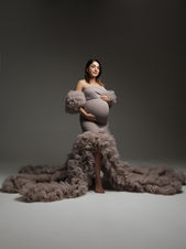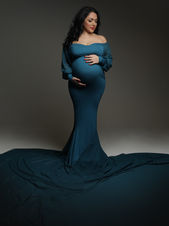 Nej. I studion finns en garderob med klänningar, smycken och accessoarer i olika stilar och storlekar. Du som gravid kan låna allt du behöver förutom underkläder.